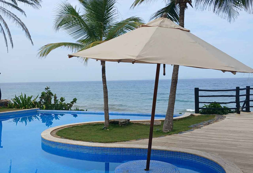Bella piscina, rodeada de acogedores ambientes, tales como: bar, área de juegos, deck solarium y esmerados jardines.